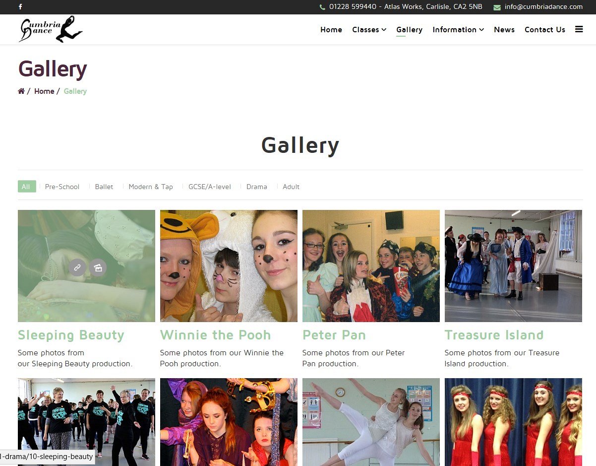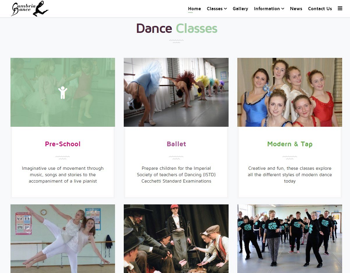 A great range of stunning photographs were being used across social media and an external blog platform, and we wanted to make much better use of these throughout the website to give a visual impression of what the dance and drama classes offer.