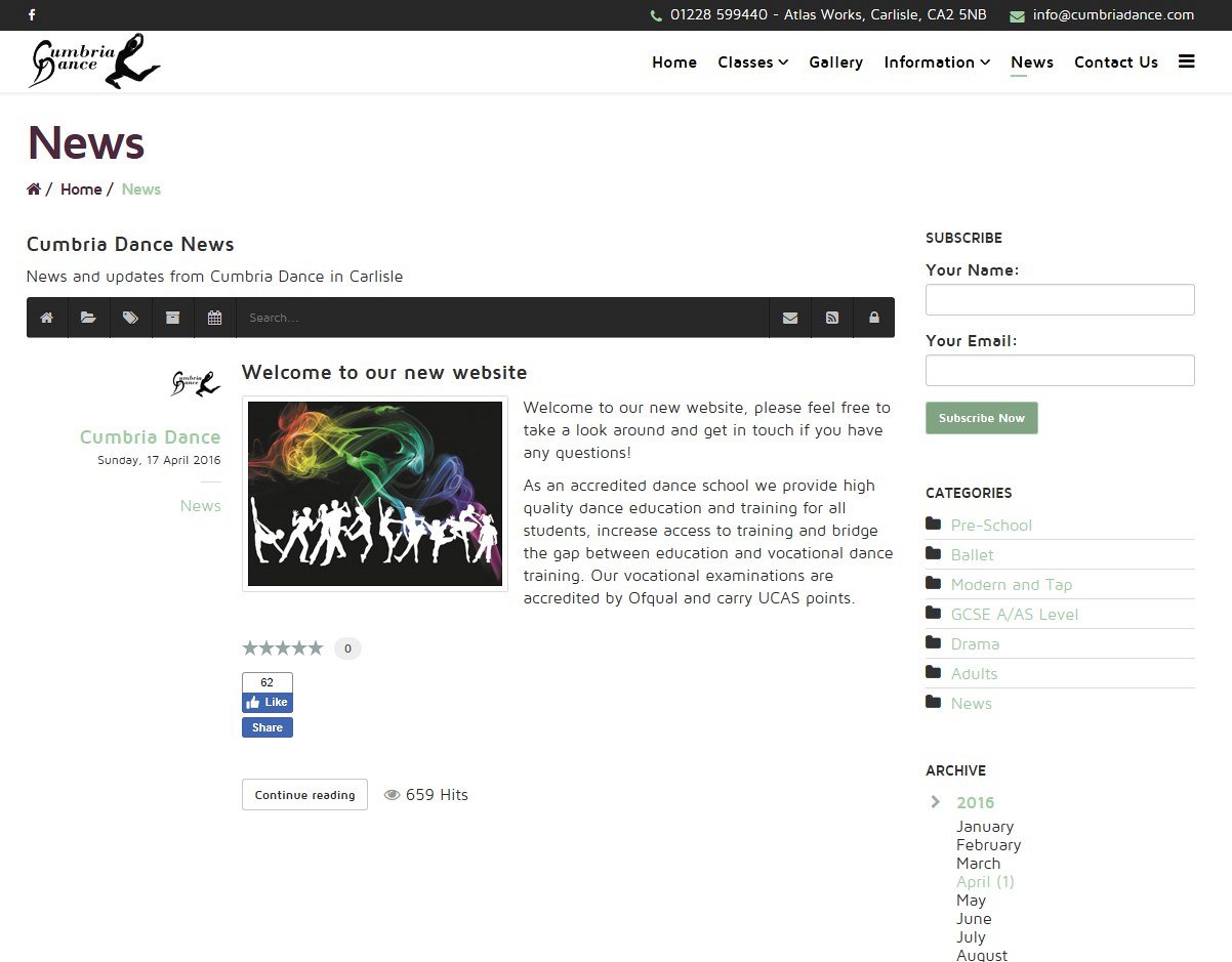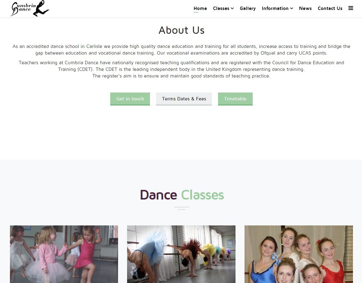Rachel approached us looking to create a new website to replace the one which was originally designed for Cumbria Dance in 2008. The focus was to bring the website right up to date with mobile support and also to ensure the design matched with the new branding and colour scheme.