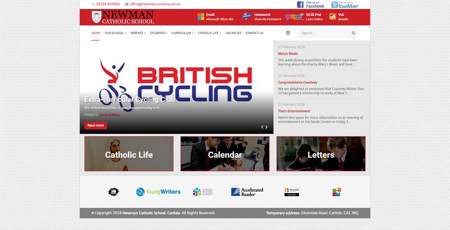 Newman Catholic School in Carlisle approached us to create a brand new website, with a focus on 'no scrolling' as far as possible on the home page, and to ensure a catholic feel to the overall website aesthetics.
