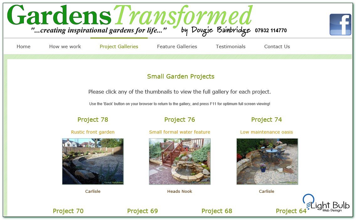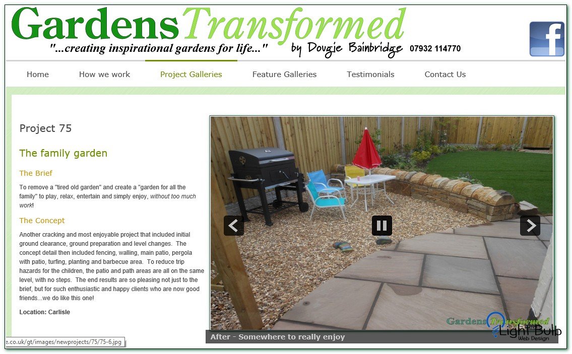 A visually stunning front-page, with a concise company introduction, offers all visitors a great impression of the work GardensTransformed can offer. All images throughout the feature and homepage slideshows are linked to their full garden project page, ensuring visitors can easily find out more about the photographs which appeal to them.