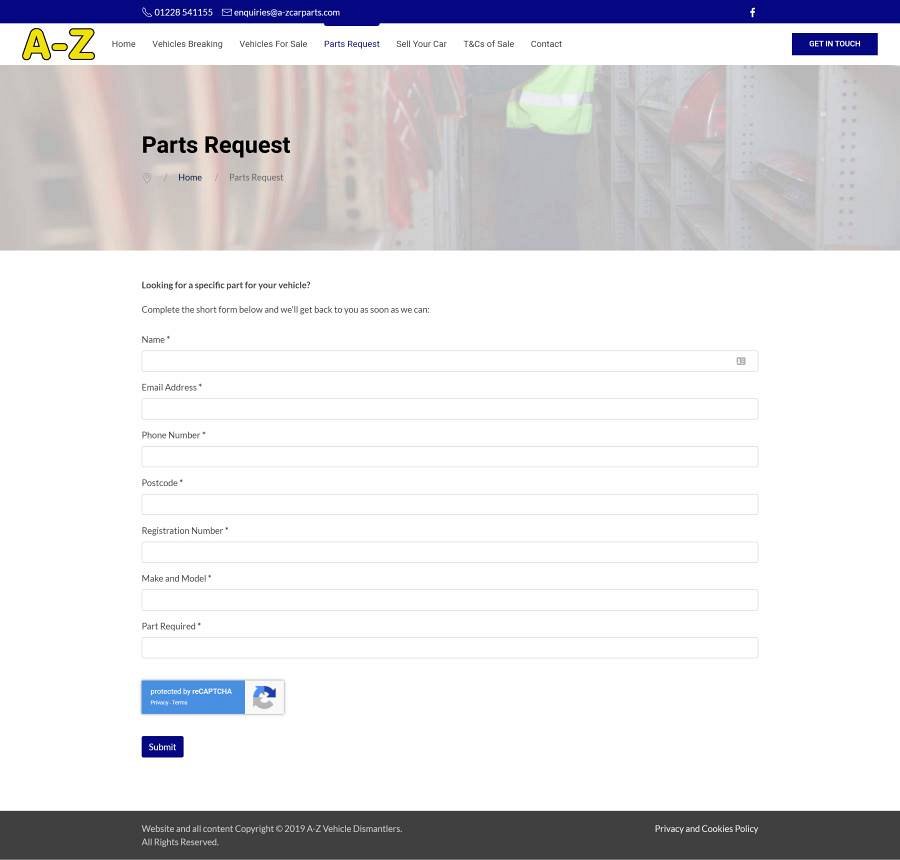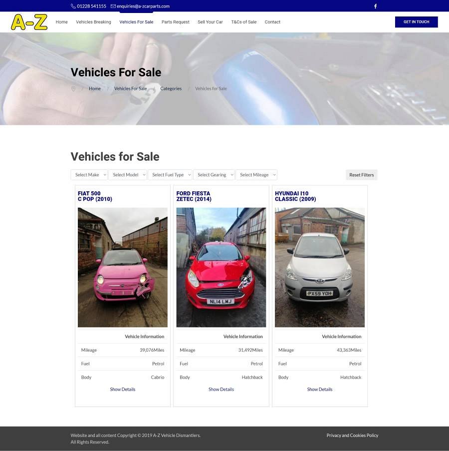 As a relation of an existing client, A-Z Car Parts asked for a website where they could easily list vehicles for sale and breaking.