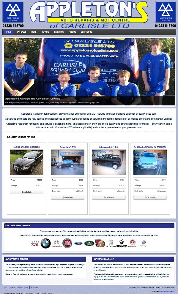 Full training and documentation was provided to enable Appleton's staff to manage the car sales feature, which like the full website, is fully responsive, allowing visitors to easily browse their cars on phones and tablets as well as computers and laptops.