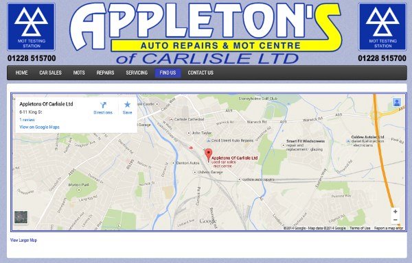 To ensure customers can find the garage easily, we have provided a Google Maps page with address details and the standard Google Maps features.