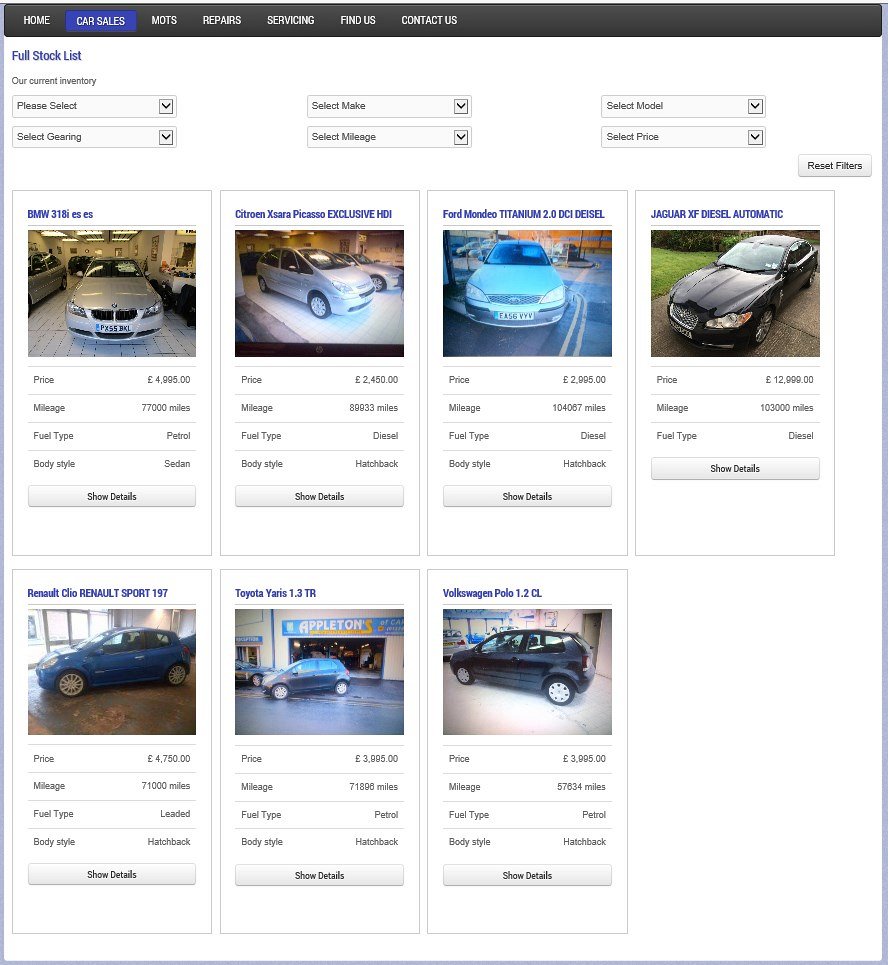 Appleton's Garage and Car Sales approached us to revamp their old website and provide an easy to use solution for advertising their car sales online.
