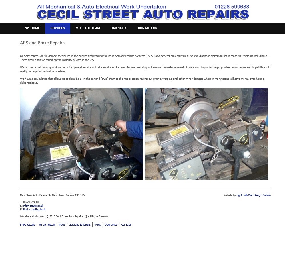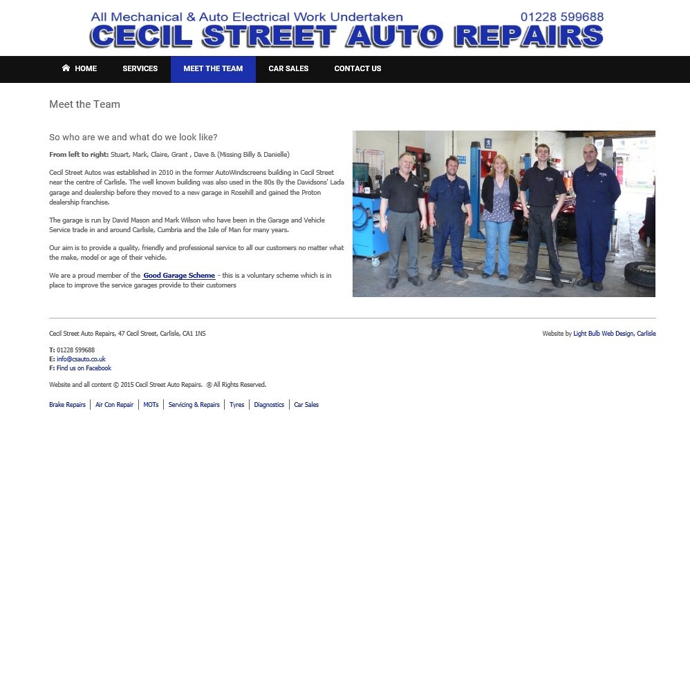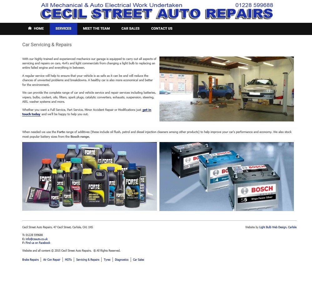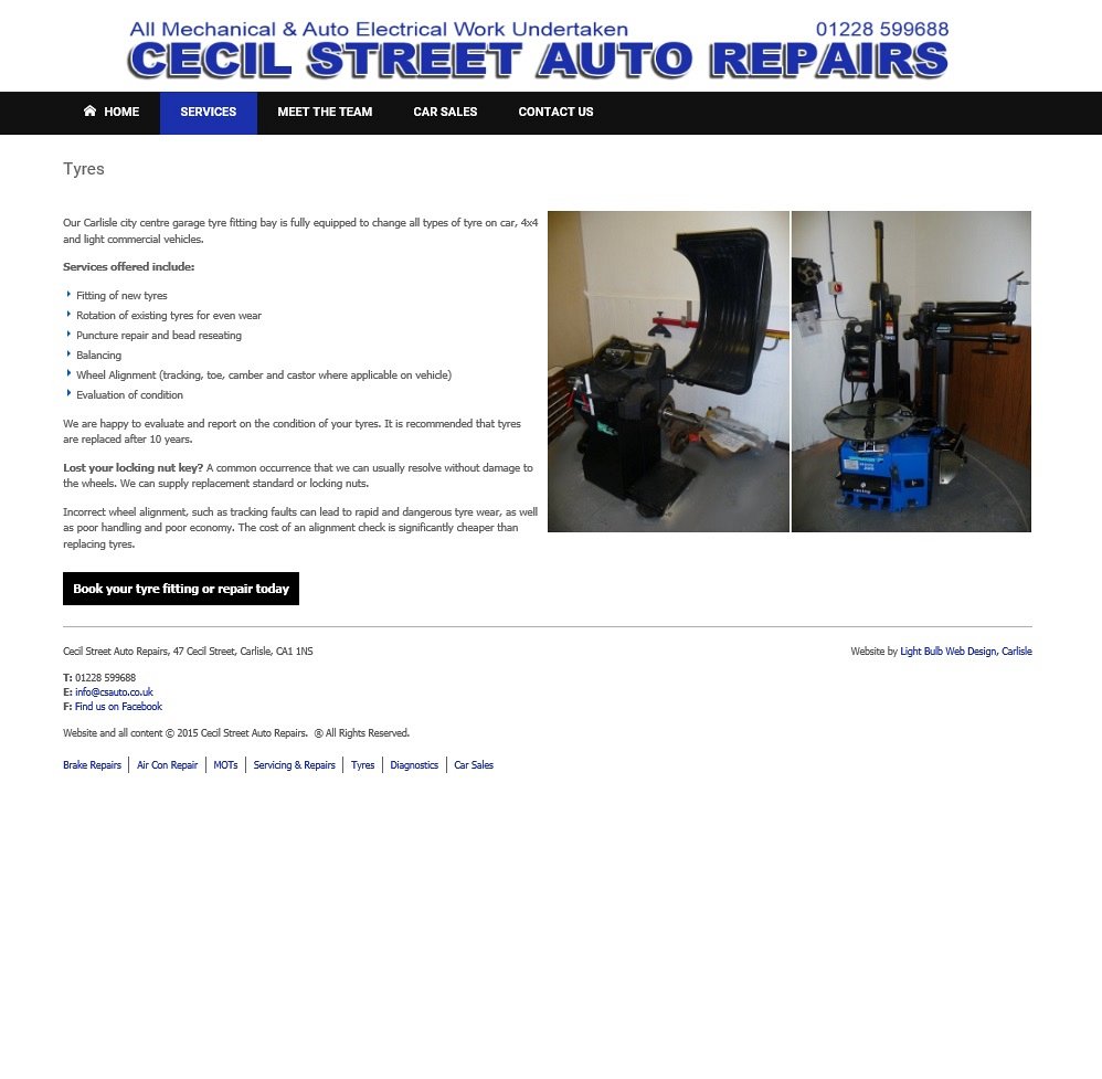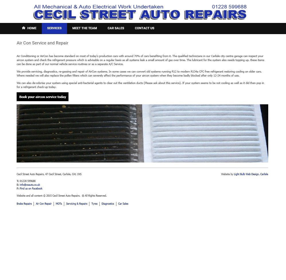 To achieve their goals, we made sure the front page of the site instantly showed a photo of their garage so people know what their business looks like and where they are. The main imagery focuses around Cecil Street Autos being an independent Vauxhall specialist, and highlighting their value for money labour rates and links to the Good Garage Scheme which they are proud to get 5 out of 5 stars for from all customer reviews! The main menu links quickly to the services they can offer.